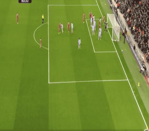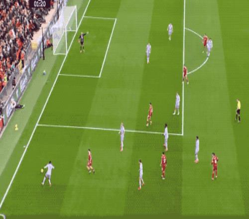 開場只有46秒,明特的解圍沒有踢遠,瓊斯頭球爭頂,?;倏送G?射門一氣呵成,利物浦取得夢幻開局。