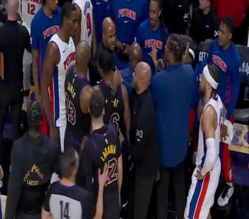 回到比賽湖人這邊依舊是詹姆斯帶隊打,一上來就中投不中,坎寧安到內(nèi)線坐打斯瑪特輕松頂翻上空藍(lán),回過來斯瑪特被吹掩護(hù)犯規(guī),防守端又吃到防守犯規(guī),這麻煩了??矊幇猜朴频絻?nèi)線比分變成40-30落后兩位數(shù)了,詹姆斯自己運(yùn)球失誤,斯圖爾特到內(nèi)線又空了,詹姆斯持球被犯規(guī),東契奇趕緊回來場面要失控了。艾頓中距離打鐵,坎寧安瀟灑分球內(nèi)線斯圖爾特被犯規(guī)了,兩罰全中第二節(jié)前兩分鐘活塞打了湖人一波8-0領(lǐng)先來到14分,詹姆斯持球過半場雷迪克喊出暫停!拉拉維亞三分打鐵,詹姆斯三分三不沾好在有前場板,詹姆斯弧頂被放空繼續(xù)投三分終于有了,霍蘭掩護(hù)犯規(guī)回過來被東契奇單打35-44分差回到9分。杜倫內(nèi)線一步過掉艾頓后者賠上犯規(guī),兩罰穩(wěn)穩(wěn)把握住,東契奇再造霍蘭打手兩罰不中,湯普森上來換下霍蘭。